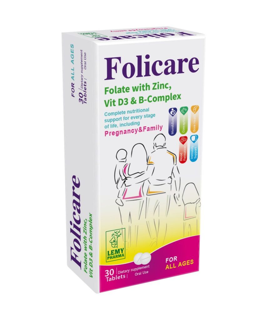 مكمل غذائي يحتوي على حمض الفوليك يساعد في تكوين خلايا الدم الحمراء، ويدعم صحة الأم قبل الولادة، ويمنع فقر الدم، ويساهم في نمو الجنين بشكل سليم.