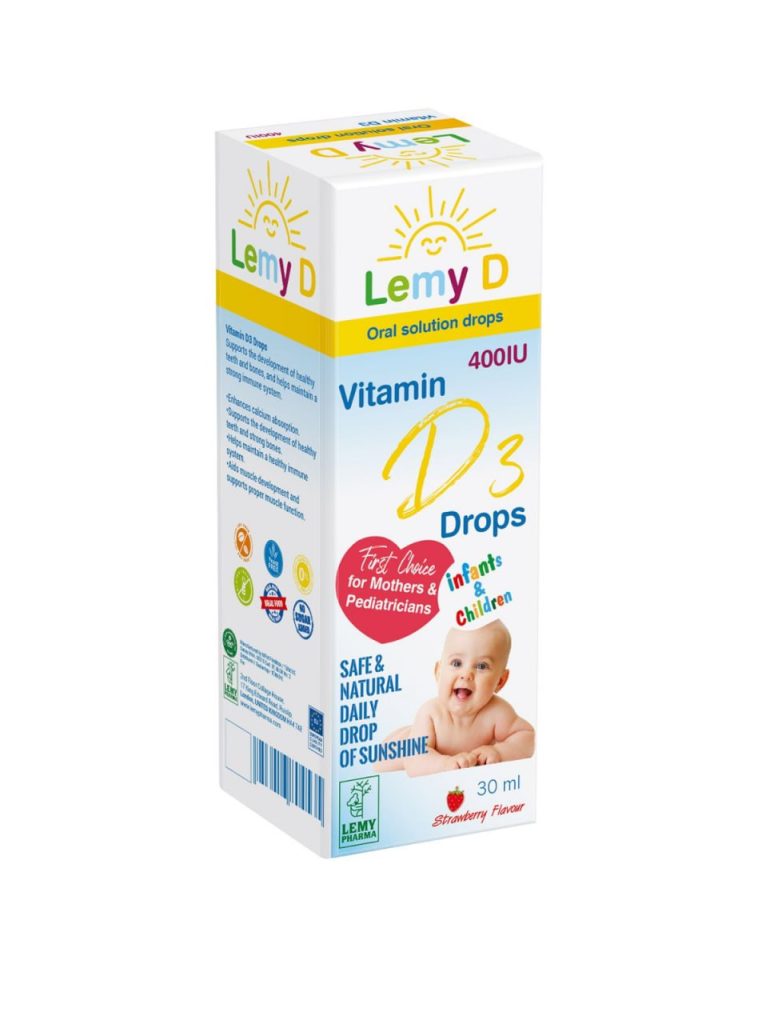 قطرات فيتامين د3 التي تدعم صحة العظام والأسنان والعضلات، وتعزز امتصاص الكالسيوم، وتحافظ على النمو العام ووظيفة المناعة.